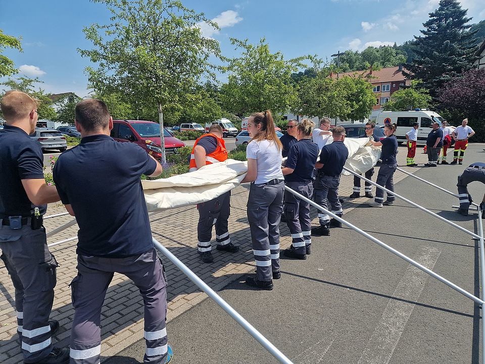 Natürlich kann unser Kreisverband eine solche Aufgabe nicht allein bewältigen. Auch wenn neben den vielen Kräften aus den Bereitschaften Niederschmalkalden, Trusetal und Wernshausen, der Bergwacht Floh, und der Bergwacht Rotterode auch unser Rettungsdienstleiter, der Leiter NHG, der Präsident des KV, die Viezepräsidentin, die Kreisbereitschaftsleitung, die JRK Kreisleitung und der Kreisleiter Bergwacht im Einsatz waren.