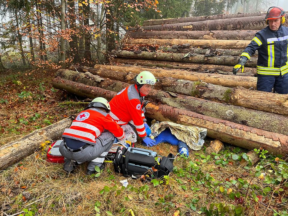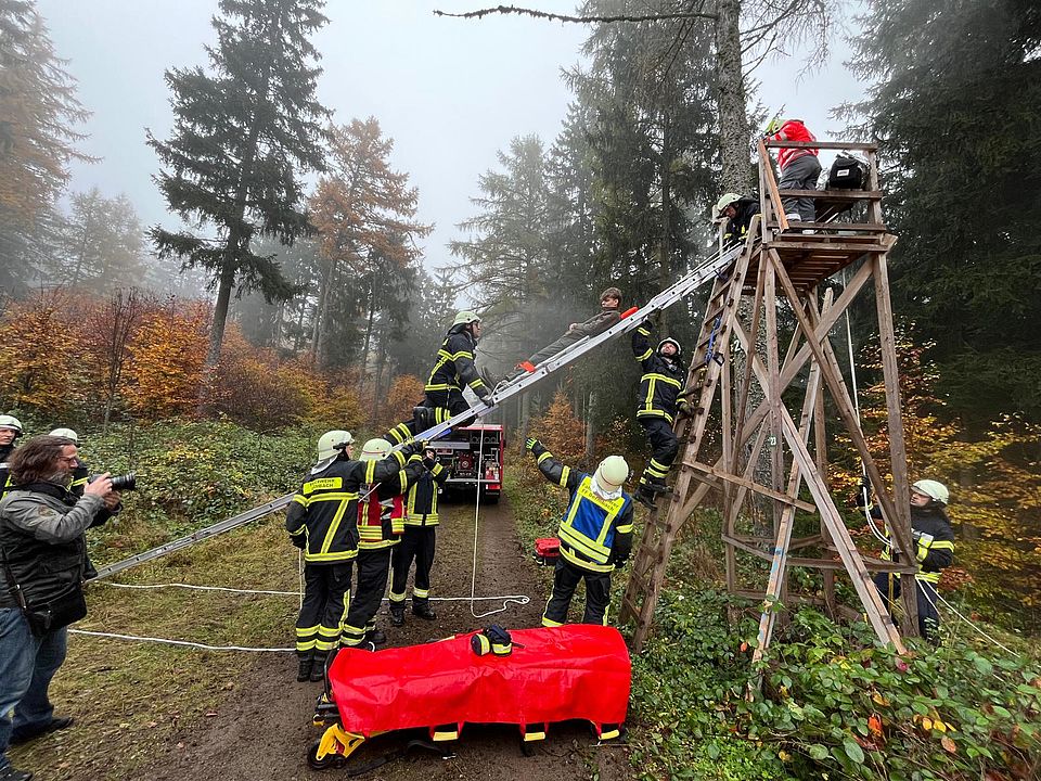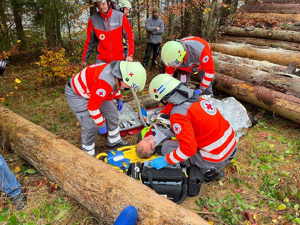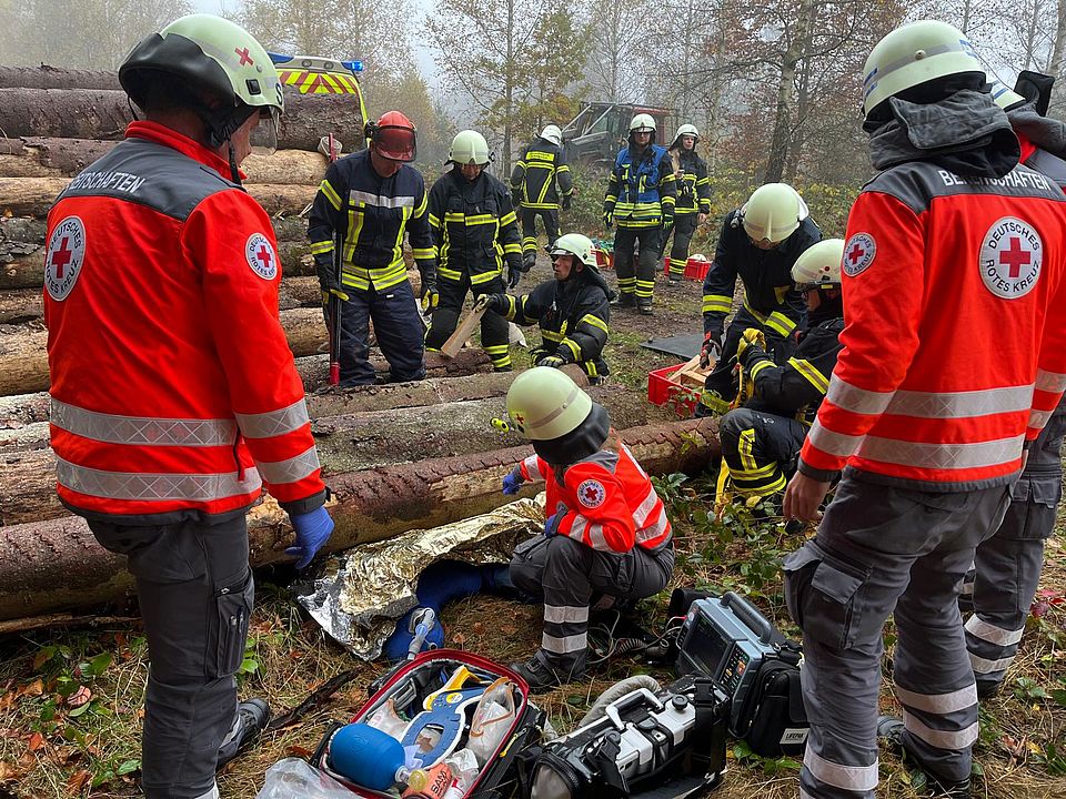 Bereits am vergangenen Mittwoch fand im Wald bei Bermbach eine Forstrettungübung mit den Rettern der SEG und der örtlichen Feuerwehr statt. Hier galt aus Waldarbeiter (Puppen und Schauspieler) fachgerecht aus einer sehr misslichen Lage zu befreien und zu versorgen. Einer war dabei von mehrerern Baumstämmen verschüttet, ein anderer auf seinem Hochsitz kolabiert.